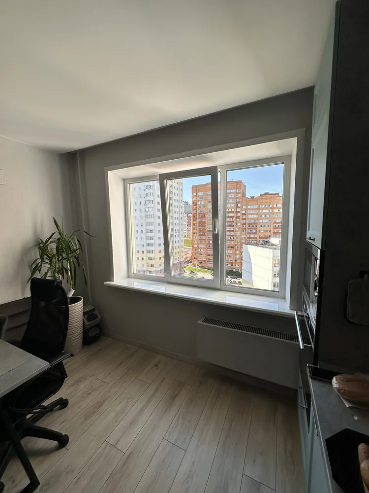 монтаж по ГОСТ пластикового окна с отделкой внутренних откосов, установкой подоконника и водоотлива, гребенка и антимоскитная сетка. г.Владимир, ул.Фатьянова , д.16